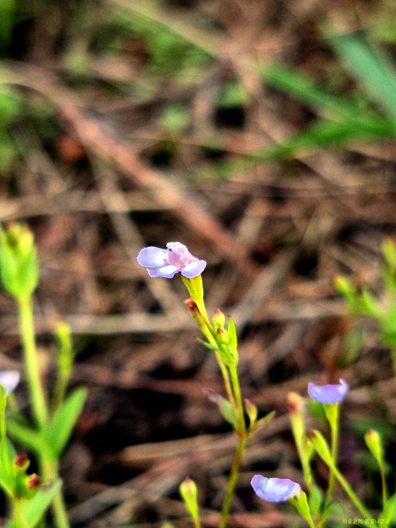 | 버섯을 보려고 대모산에 갔다가 우연히 지인을 만났다. 카메라로 정성들여 버섯을 찍고 있기에 유심히 보니 그분 같아 기다렸다. 사진을 다 찍고 나서 서로 얼굴을 마주쳤다. 혹 실수할까 봐 가만히 있었더니 먼저 아는 체를 한다. 작년부터 이곳에 턱받이광대버섯을 구경시켜 준 분이다. 두 번째 만나고 세 번째 만나게 된 샘이다. 언젠가 내가 국내에서 본 적이 없는 외풀을 블로그에 올렸기에 나도 좀 보고 싶다고 댓글을 달았는데 무소식이라서 아 자생지 보호를 철저히 하시는 분이라 그러나 보다 하고 지나갔다. 그런데 그 생각이 나셨나 보다. 버섯들도 별로 없고 하니 그걸 보려 가자고 한다. 한참 걸어서 그곳에 갔다. 자생지가 남부지역인데 수목 유통과정에서 따라와 나게 됐나보다고 한다. 처음엔 극히 소수였는데 지금은 불어나서 밭을 이룬다. 식물체도 꽃도 작아서 휴대폰으로 사진에 담기에 한계가 있다. 할 수 있는 데까지 사진을 찍었다. 현삼과 식물인데 그래도 처음 관찰한게 오늘의 의미가 있다. 외풀을 말레이시아에서 본 적이 있는데 잎에 좀 차이가 있다. 잎가장자리에 톱니가 거의 없는데 거기 것은 분명하게 톱니가 있다. 나에게 외풀을 구경시켜 주기 위해 오늘 보이지 않는 뭔가가 그분을 만나게 해 주었나 보다. 고맙게 생각한다. |