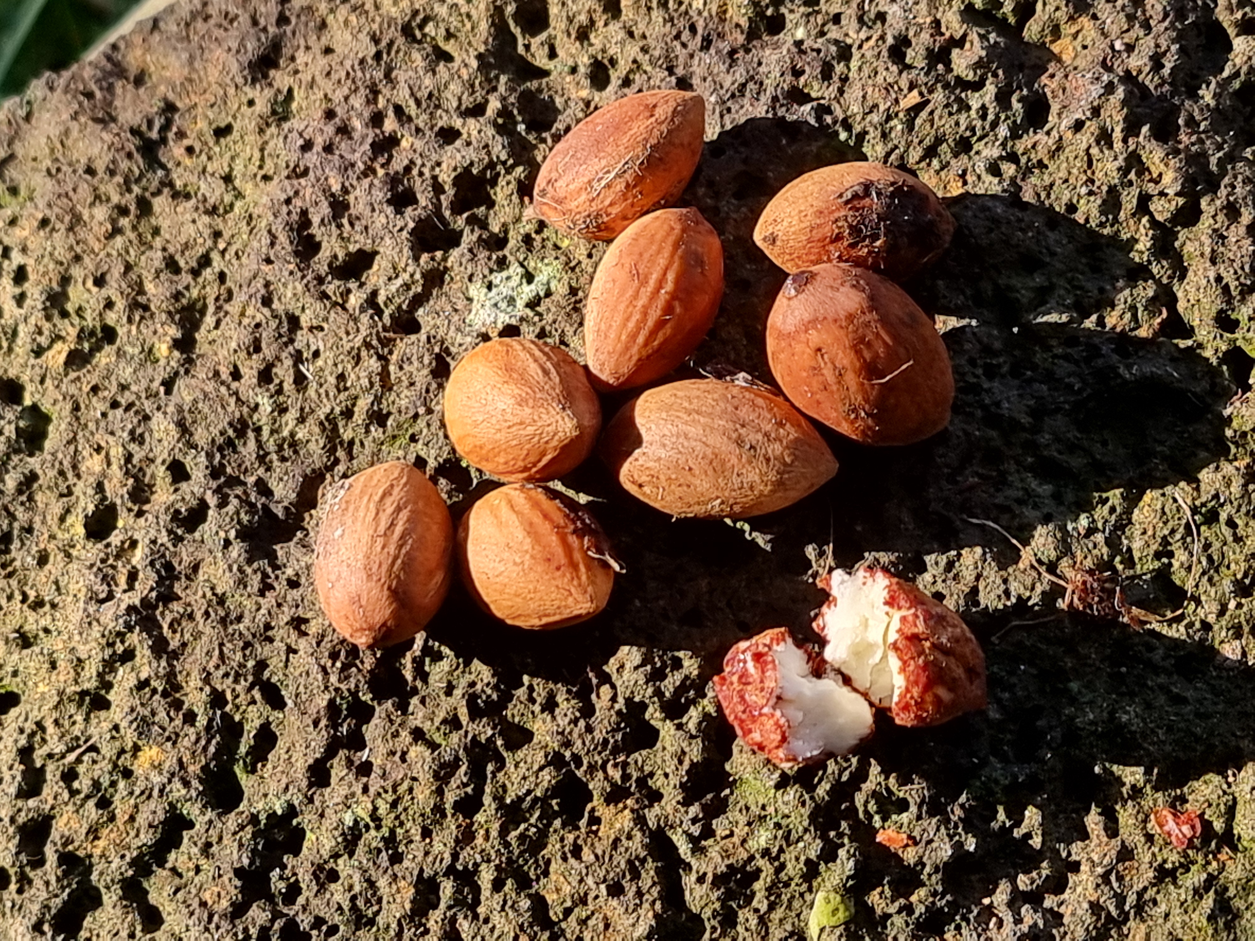 종자 길이 2-3.5cm의 타원형 또는 도란상이며 녹색의 얇은 육질 가종피로 완전히 싸여 있는 핵과상이다. 종자는 이듬해 9-10월에 녹색으로 익으며, 가종피가 벌어지면 속에 갈색의 종자가 나온다.