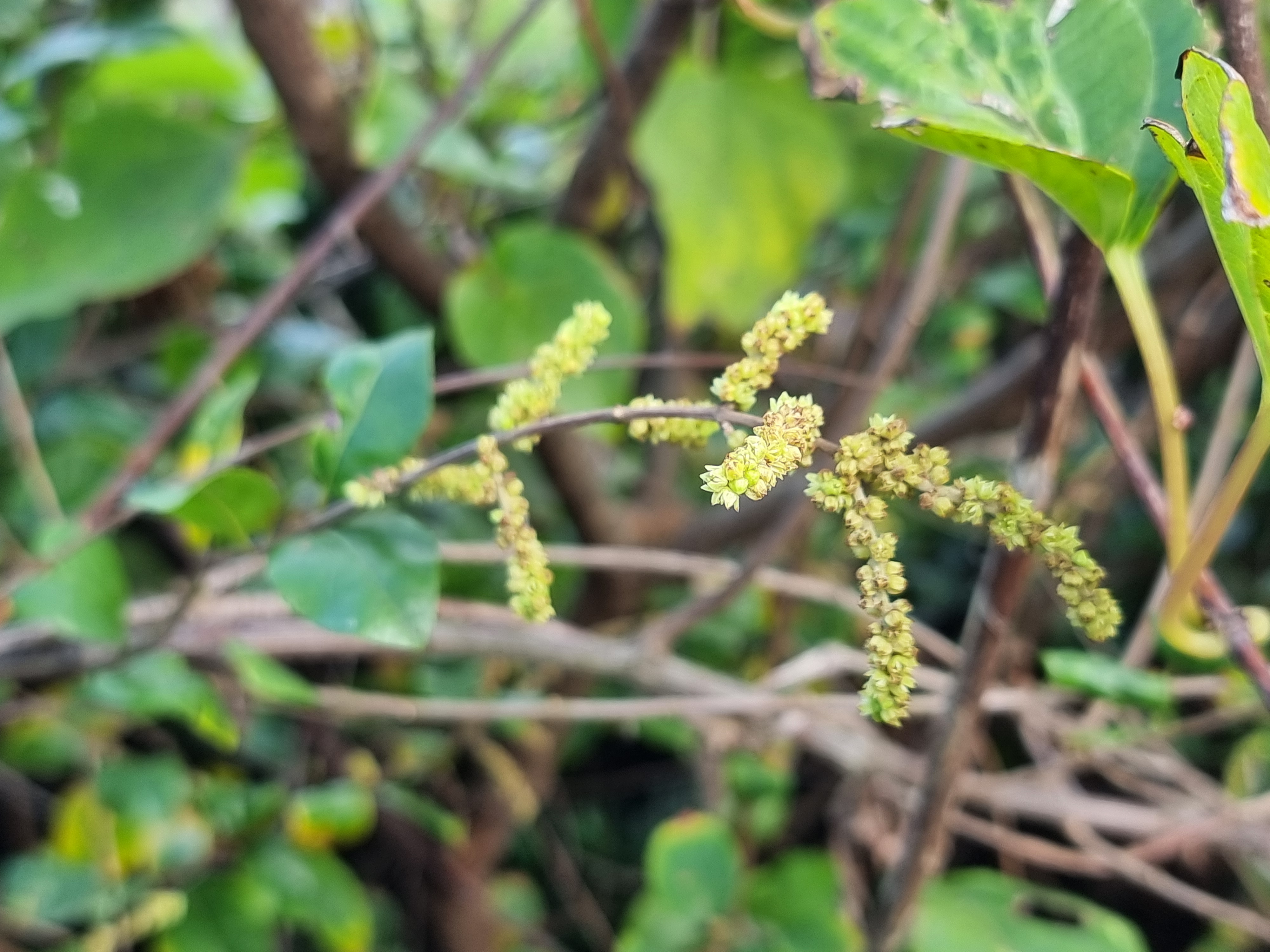 꽃 10-11월에 가지 끝 또는 잎겨드랑이에서 나온 수상꽃차례에 황색 양성화가 모여 달린다. 꽃은 지름 3.5mm 정도이며, 꽃잎은 주걱형이고 꽃받침 열편보다 짧다. 작은꽃자루는 거의 없으며, 꽃잎, 꽃받침열편, 수술은 각각 5개이다. 꽃받침열편은 길이 1mm 정도의 삼각형이며 꽃의 암술대가 매우 짧고 암술머리는 3갈래로 갈라진다.