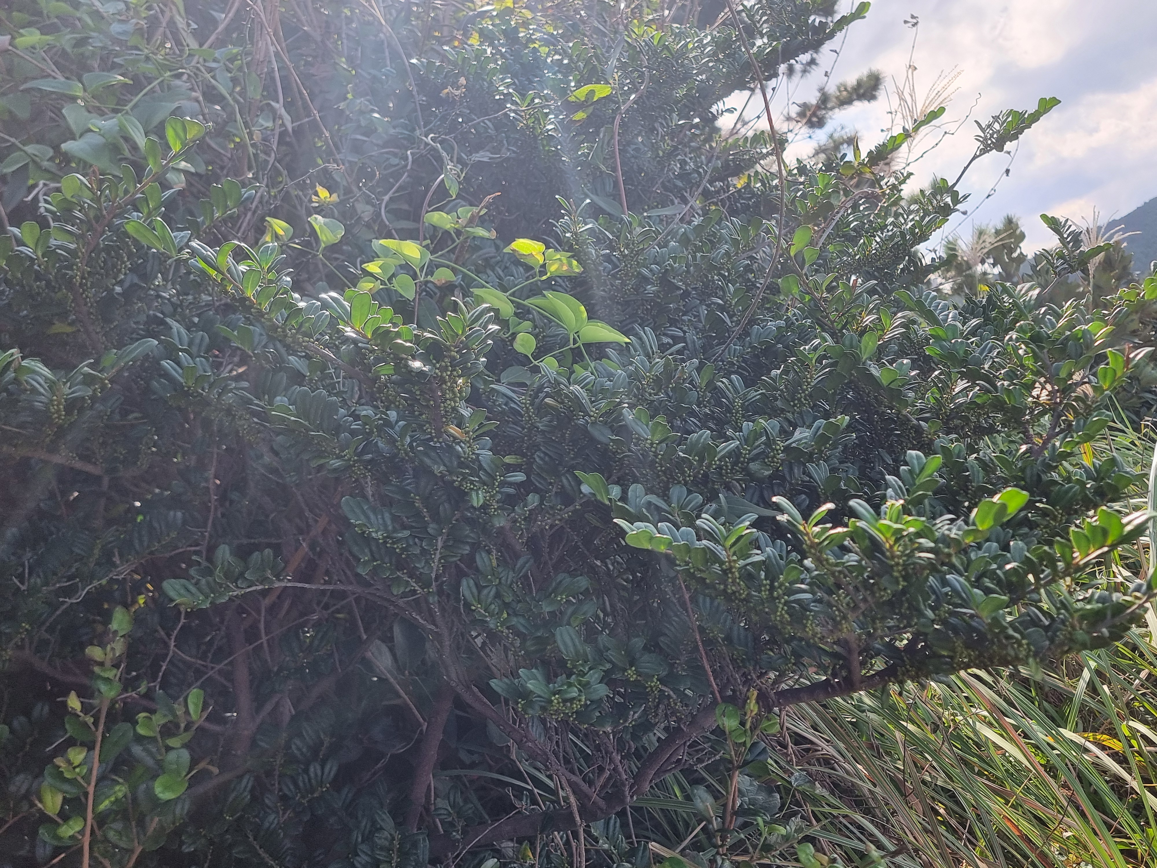 2. 꽃도 사스레피나무와 달리 보통 10-12월에 피며 주로 갯바위, 바닷가의 풀밭 및 산지 등 바다와 인접해서 분포한다.