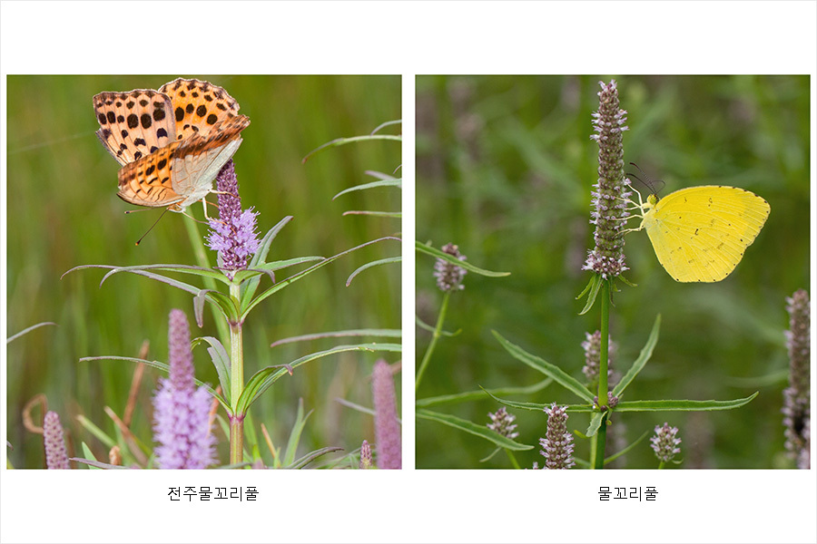 2. 전주물꼬리풀에 비해 한해살이풀로 지하경이 없고 잎은 3-6장이 윤생하며 화수가 좁고 수술대에 잔털이 드문드문 있다.------물꼬리풀