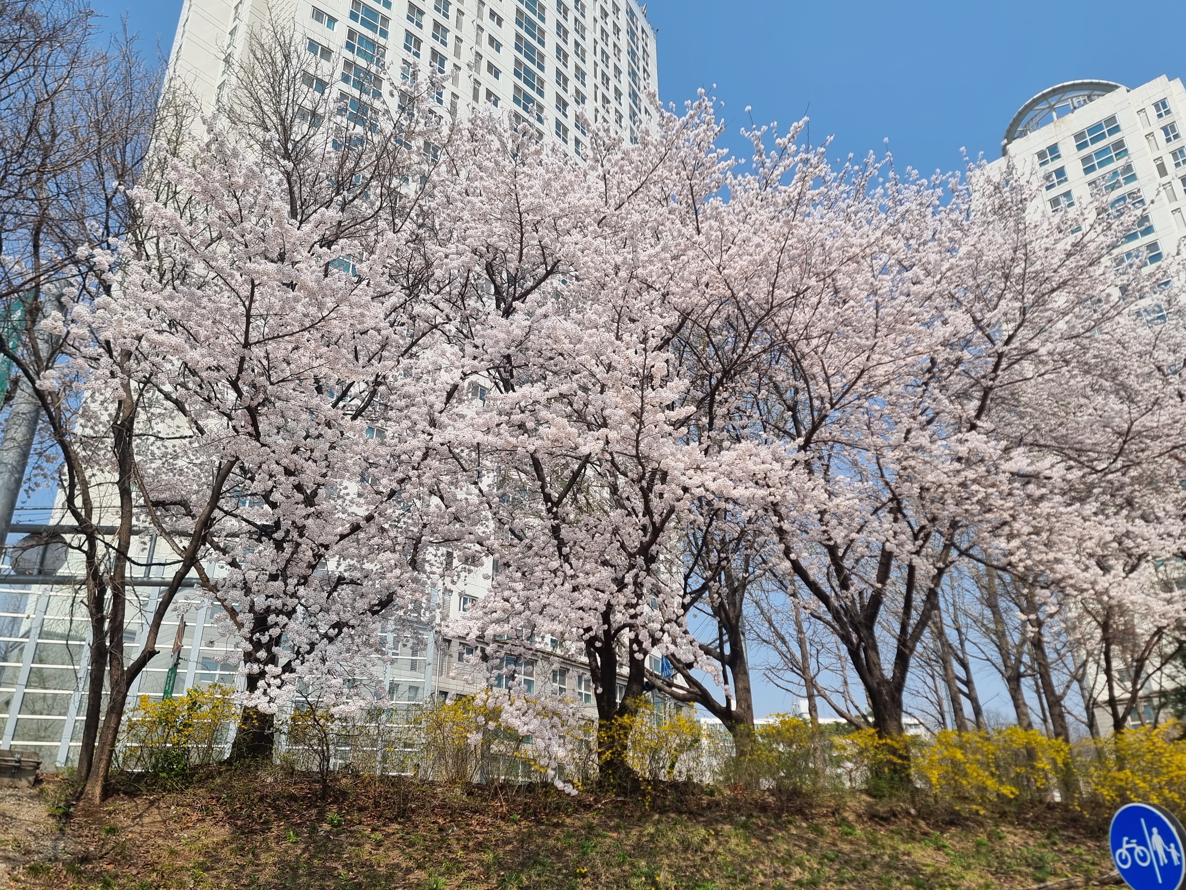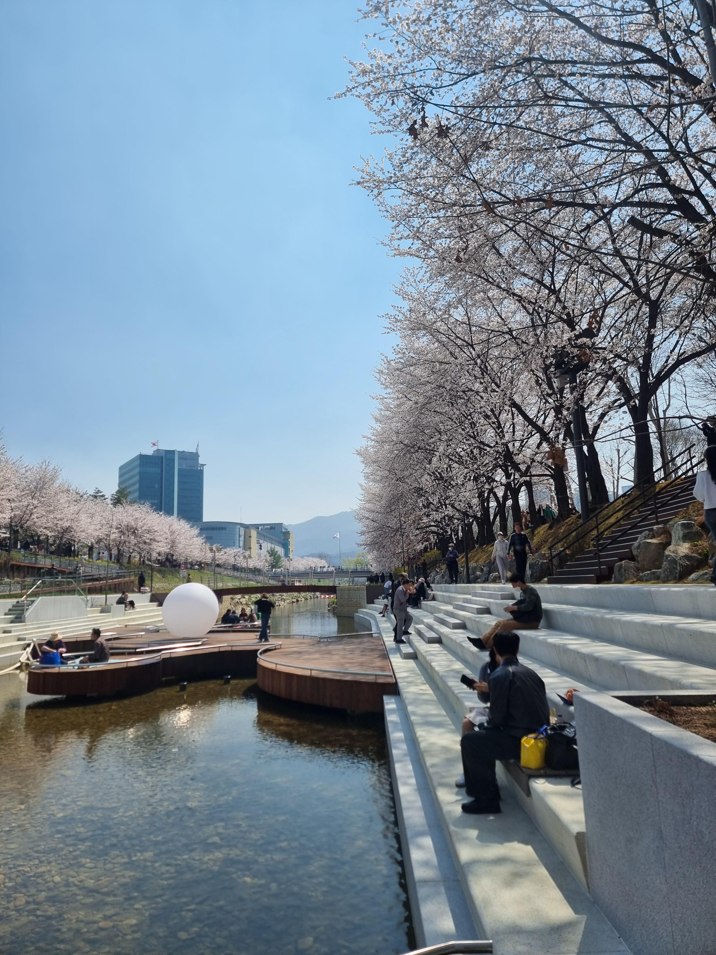 양재천에는 왕벚나무 꽃이 만발했다.