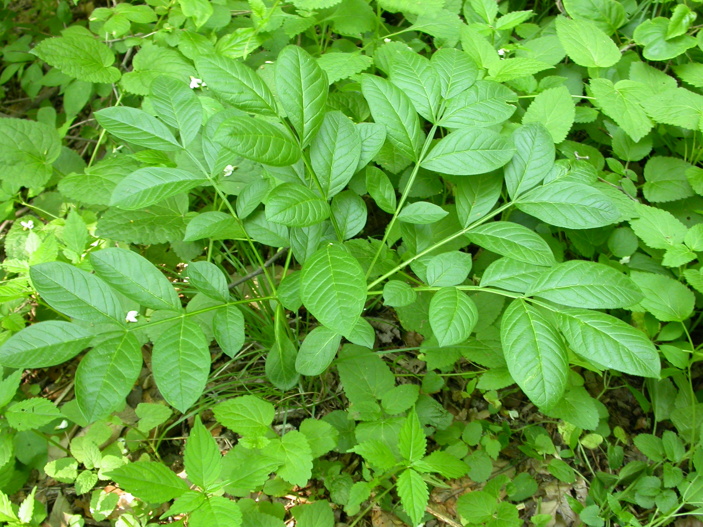 잎 어긋나며, 작은 잎 2-4쌍으로 된 깃꼴겹잎이다. 작은 잎은 난형 또는 타원형이며, 톱니가 있다.